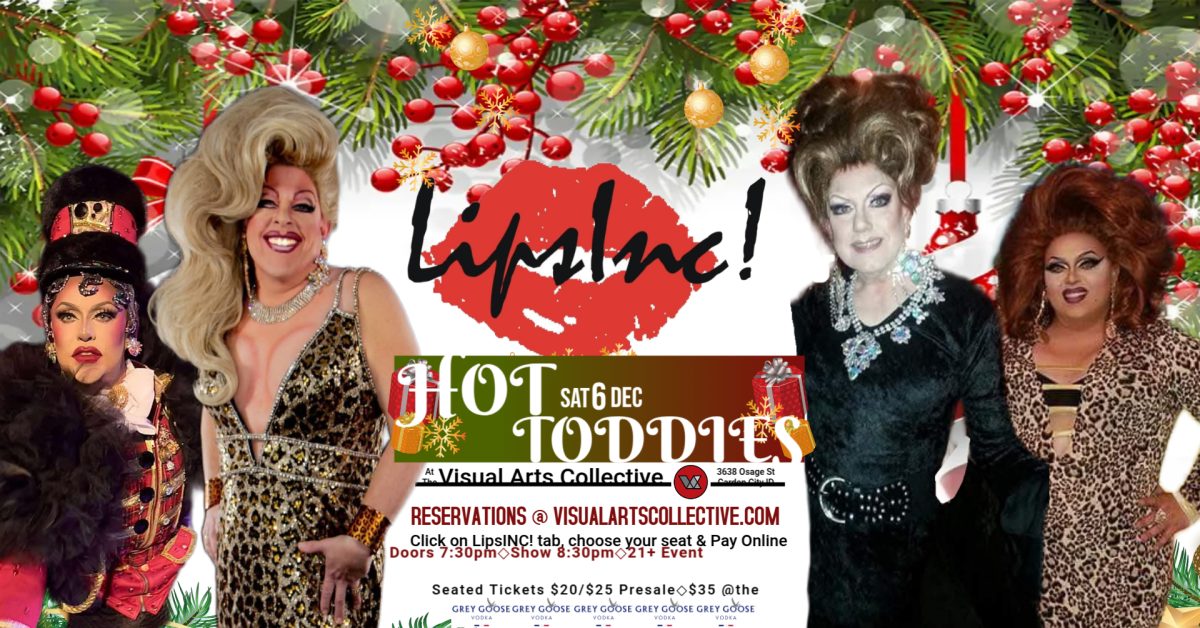 ‘Tis the season again for the ladies of LipsInc! to wreck your holidays! Please join us Saturday, December 6th, for LipsInc!’s “Hot Toddies” at the Visual Arts Collective (VAC)! It will be a festive celebration of yuletide depravity, no matter which holiday you’re celebrating (see attached poster). Joining your regular Ho Hos —Victoria, Klohe, Xtina, and Martini — on this musical slay ride will be the virginal (Ha!) Chrome as our guest entertainer! We will have plenty of stocking stuffers from our Promotional Materials Provider, Grey Goose/Bacardi/Patron. This is usually LipsInc!’s most popular show of the year, so you’ll want to get your reservations quickly for the best seats! LipsInc!’s reservations are online! This ticket platform shows you the full price up front, including taxes & fees, so no surprises at the end (downloading the app is best). As usual, doors open at 7:30 sharp, and the show starts at 8:30. Besides our $25+ tax/fee on Dice, there is now a section of seats available for $ 20+ tax/fee! LipsInc! Tickets at the door are still $35. Grab your tickets now for this jingle-jangled LipsInc! holiday extravaganza! We’ve been making your Yule twinkle for over 28 years!
